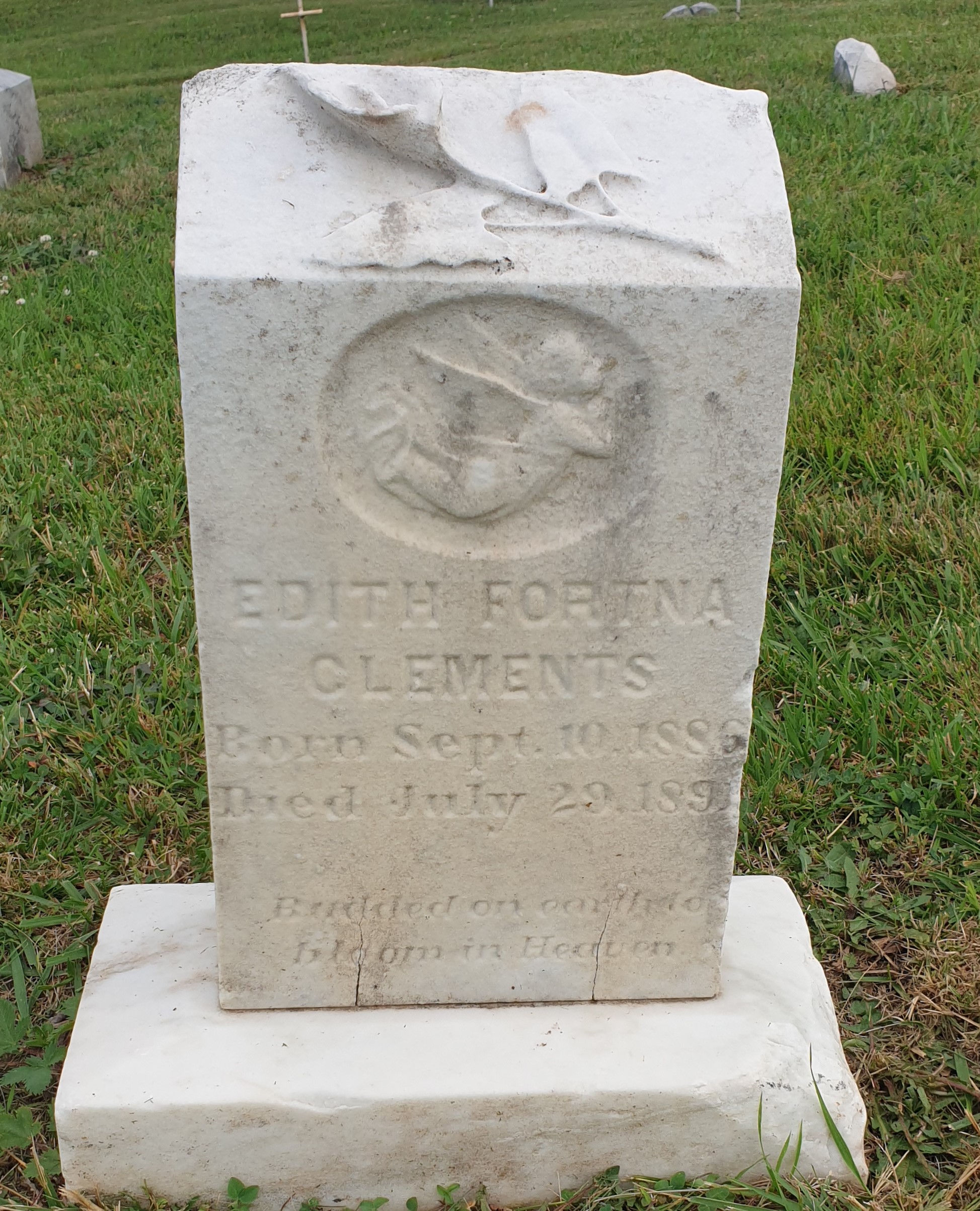 Edith Fortna Clements (1886-1891) is buried in Ellsworth Cemetery, in Westminster, Maryland.